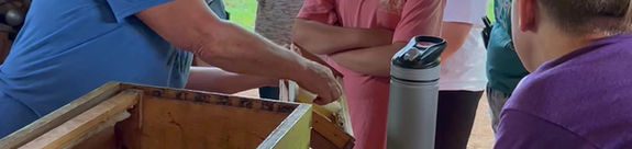 Bee ambassador Gaylene showed us around her bee paradise, explaining the habitat she provides for "the ladies." Crew members got to assemble frames for a new box, process honey, and create their own candles.